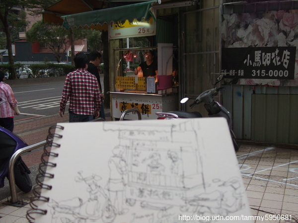 小蓉 / 繪圖攝影:【2015 / 475 淡彩速寫 :路邊街景 / 蔥抓餅小販 】輪廓
