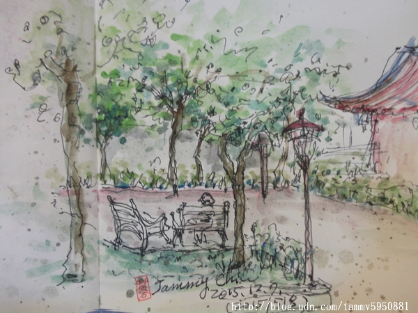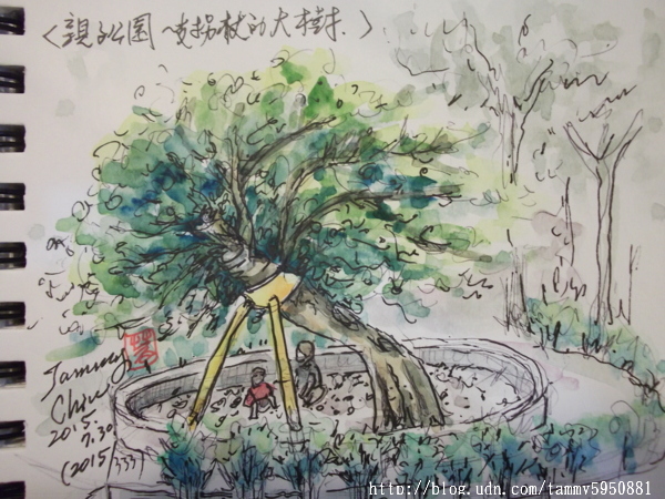 小蓉 / 繪圖攝影:【2015/ 333 淡彩速寫:親子公園倚著拐杖的大樹】