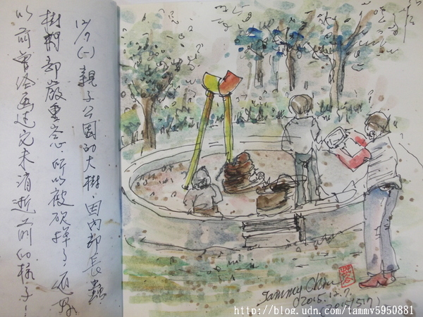 小蓉 / 繪圖攝影:【2015 / 517 淡彩速寫:親子公園大樹砍掉了】