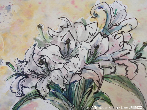 小蓉 / 繪圖攝影:【2016 / 054 竹筷與淡彩速寫:瓶花。香水百合 】局部