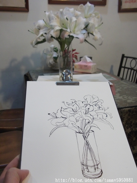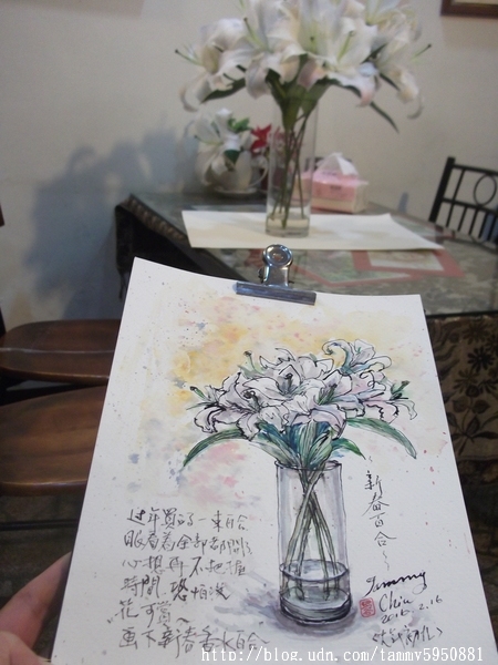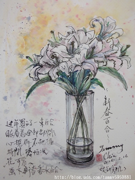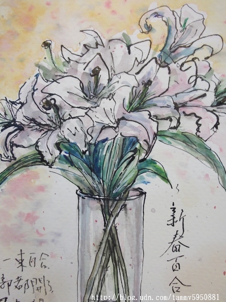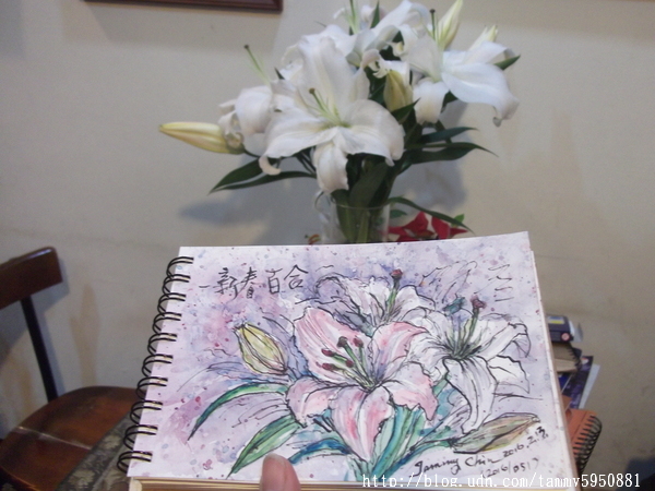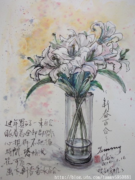 小蓉 / 繪圖攝影:【2016 / 054 竹筷與淡彩速寫:瓶花。香水百合 】