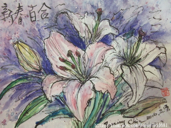 小蓉 / 繪圖攝影:【2016 / 053 竹筷與淡彩速寫:香水百合 】
