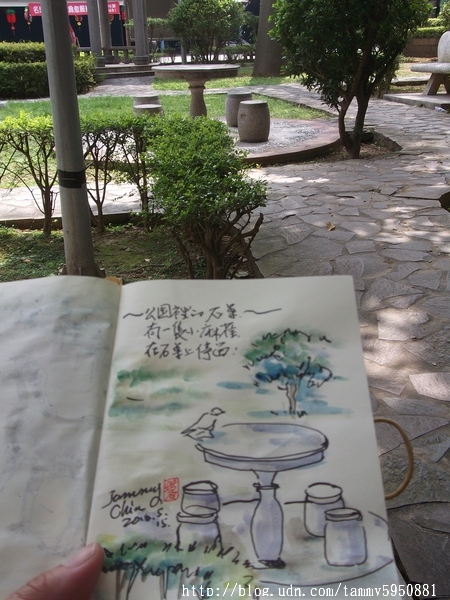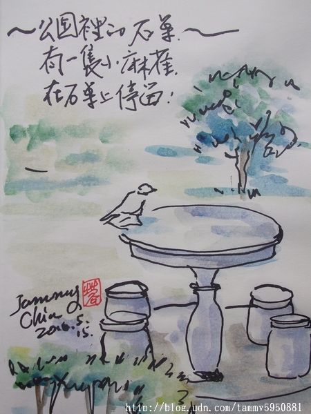 小蓉 / 繪圖攝影:【2016 / 104 淡彩速寫:親子公園石桌上有麻雀】