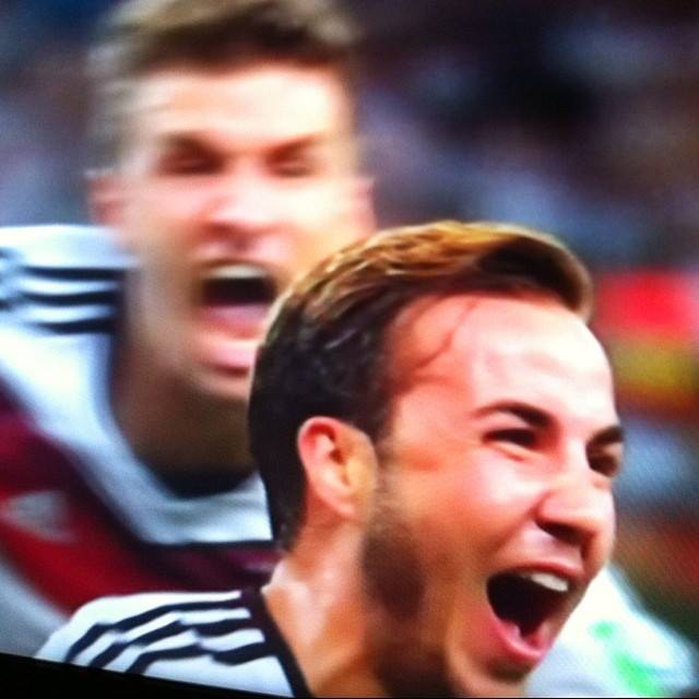 世界盃足球賽德國與阿根廷的冠亞軍戰,2014.07.14.至延長賽113分鐘德國進球~~~進球!德國1,阿根廷0。