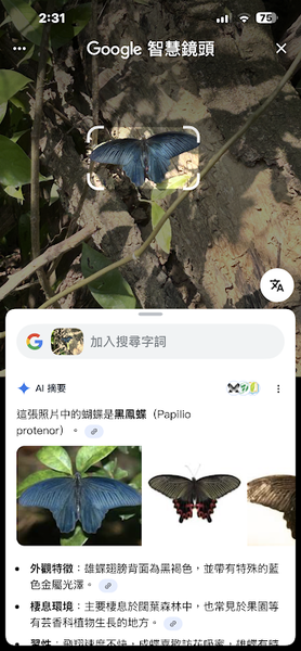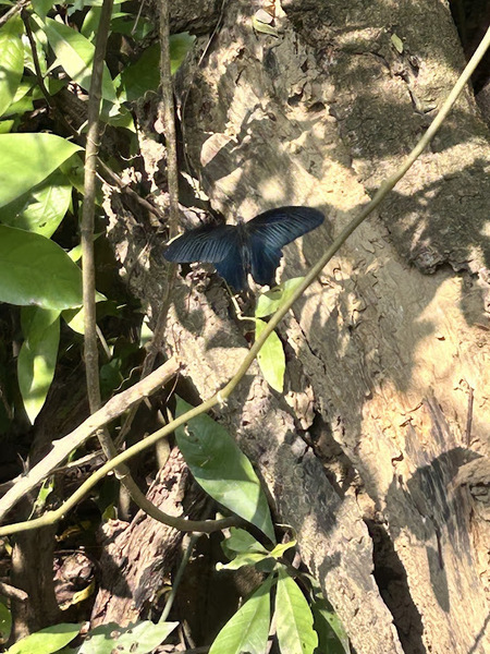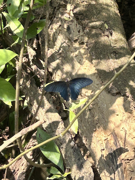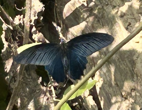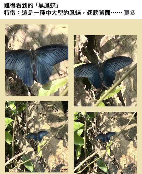 特徵:這是一種中大型的鳳蝶,翅膀背面為黑褐色,並帶有深藍色的金屬光澤。