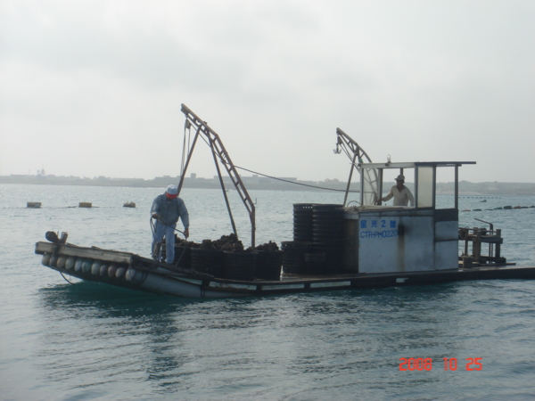 小舢舨上載著今天我們的食物-剛撈起的牡蠣。