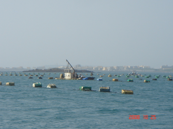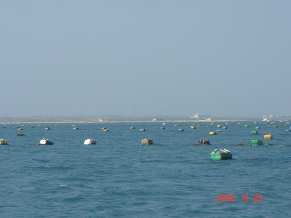 這單排的浮筒下方,就是提供海鮮市場裡的充沛貨源的保證。