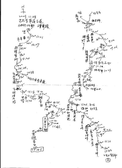 再度啟行至大榕樹古道北口,過遠望坑橋至遠望坑街11號民宅前通過右,轉上稜線為往遠望坑山之路不取,仍直行水田田埂,此地可遙望古道正路人潮接踵而行, 前往至此因已至中午之時刻,下溪邊午休兼泡茶.午休後過一木板橋上接草嶺古道正路.一會即抵[雄鎮蠻煙碑].街下來之旅程即涼亭洗手間----虎字碑-----啞口鞍部----客棧遺址奉茶亭----護管所下切石階步道穿越產道,走約20分鐘左右,東北角管理處新建一條自然步道,路口有指示牌亦標示出等高線圖,從圖上可得知路徑是陡上一小山頭後有一觀景台,路徑再陡下至大里天公廟後方公園.因此路徑未曾走過,順道利用此機會把路線圖繪製紀錄完成.自然步道並不長,若是不在入口處有石桌石椅停留第三度泡茶,應可於25--30分鐘內走完自然步道.於15:45抵大里遊客中心.2009年的芒花季古道健行,繞三小段路徑.走了一趟不同於一般遊客所走正統路線,