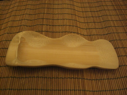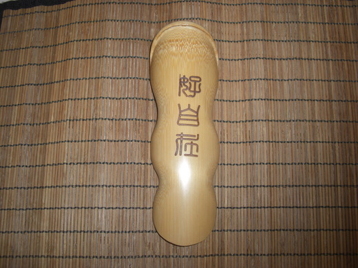 這隻茶則完成已一陣子,遲遲未膽敢貼文,乃因非吾之創作,已經徵得師姐雲跡之首肯後,才將之掛上.此茶則外形如海蝸牛即蛤蝓,也像是那個勒,就是--------因此商請游師兄予以雷射刻字--[好自在]在茶則背面.因以為名.