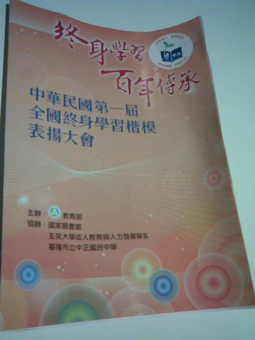 這是教育部為加強終身學習的推廣,提倡國人每天至少運動30分鐘,每天至少學習30分鐘 ,並且日行一善,特別辦理[第一屆全國終身學習楷模]的選薦表揚,宣導受獎人終身學習事蹟呈現現代公民終身學習特質,以蔚為風氣.