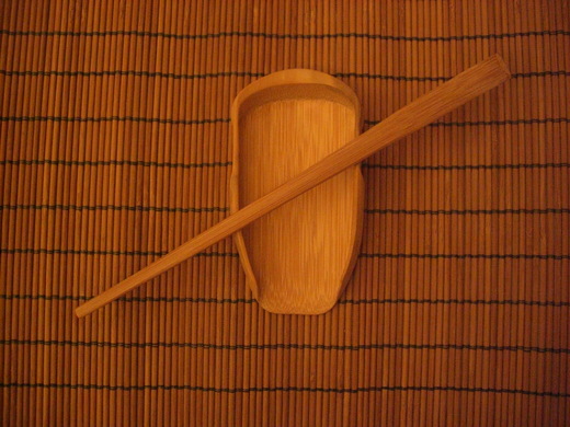 泡一壺茶,茶葉為免於置入手中吸異味,在置茶過程中以茶則做為茶與壺之橋樑.茶則之材質很多,以竹,木,角.陶瓷等居多.其它材料亦可.然而,其中以竹材為佳,竹製品若長時間使用可呈現出油亮光光澤, 可達到如養壺之趣.