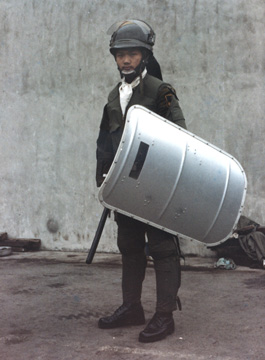 「報告營長!鎮暴裝備不是還沒下來嗎?那萬一碰到暴力事件,我們豈不是又要向去年那樣挨打?」