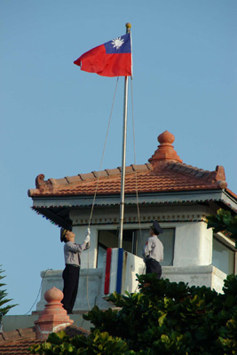 適逢雙十國慶,在全台各地一片倒扁紅潮中,孤懸海隅的澎湖離島卻顯得異常平靜無波;澎縣地方各界也在縣長王乾發的帶領下,於縣府廣場舉行升旗典禮,一如往常般地慶祝「中華民國」生日。