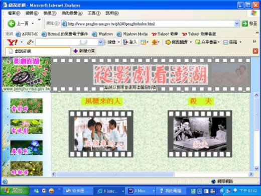 澎湖是天人菊與海的故鄉,沙灘潔白、景色秀麗,不但是觀光勝地,也是導演心目中首選的天然場景,多年來,更有不少影片、偶像劇、單元劇、廣告片紛紛選擇澎湖為背景來拍攝;澎湖國家風景區管理處為讓遊客瞭解片中取景確切位置,以及附近有什麼觀光景點,安排到此一遊,體驗情境,特別製作「影劇澎湖」網頁,提供詳盡的影片介紹和旅遊資訊,網友想要一窺究竟只要進入澎湖國家風景區首頁,就可點選連結,或在瀏覽器網址列輸入:「http://www.penghu-nsa.gov.tw/ph240penghu/index.html」即可進入瀏覽。