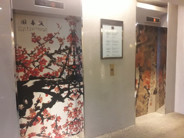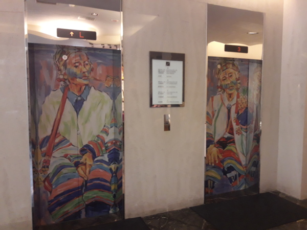 連電梯門都沾染了藝術氛圍,原住民圖騰以及報春圖。