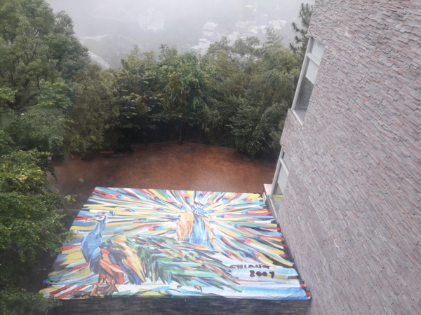 就連大廳雨遮都是孔雀開屏的圖樣,竹美山閣真的是藝術無所不在。