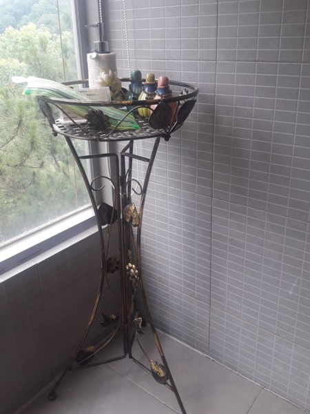 淋浴間有個很高雅的鍛鐵架,是放置沐浴用品的唷!