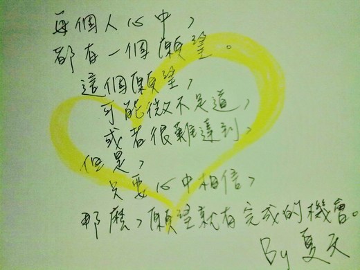 也許夏天無法做到很艱難的部分,但是,只要是夏天能力所及,夏天一定會盡心盡力的完成它,因為,那也是我的願望。