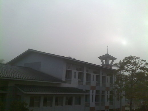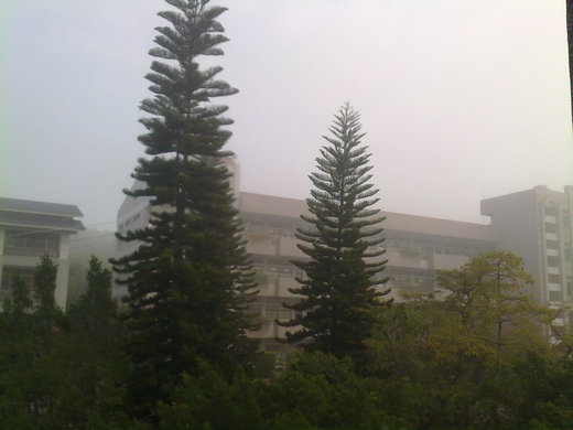 一大清早,下了車,就被雲霧圍繞著,彷彿自己走入了仙境般,好不浪漫,真讓我捨不得走進教室了呢!