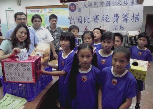 桃園縣同安國小男、女足球隊今年再拿下北部地區三冠王,8月初要赴廣西比賽,卻面臨經費不足的窘況,教練游崑銘為學生圓夢,在學校、家長同意下,安排學生練球前,先到附近社區、大賣場義賣,減輕家長負擔。學生們本著比賽拼進球的精神,帶著海報、義賣品,無懼人群拉開嗓子高喊,或挨家挨戶多對一說明義賣原因,贏得不少人支持,近一個月的收入已夠支付一半旅費,出國比賽已經不是夢。