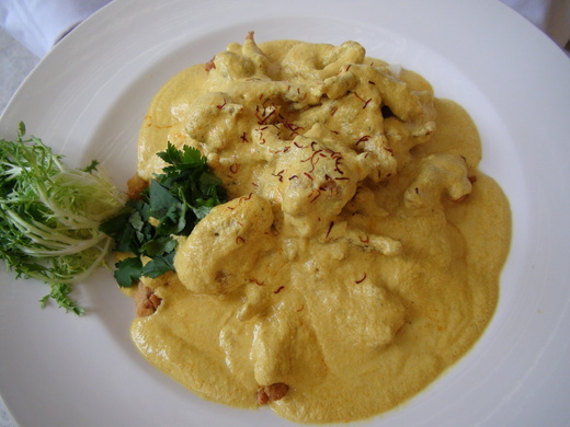 那天,我在一家餐廳吃到「紅花咖哩蟹」,餐廳的行政主廚說,這道咖哩是以番紅花,添加30多種中藥香料,急速冷凍研磨成粉,結合軟殼蟹後,讓食物有迷人的金黃色澤,細膩的咖哩味道成為與眾不同的佳餚,搭配麵包更可口。
