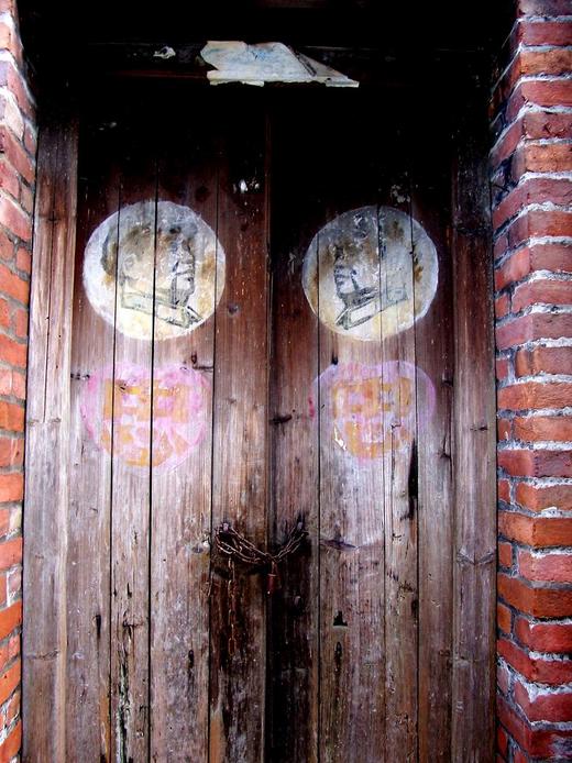 這張照片是在東莞茶山鎮的南社古村拍的. 門上的毛像和忠字都已經斑駁. 想當年的進進出出, 紅衛兵, 革委會, 宣傳隊 ...;開開掩掩, 揪, 砸, 拉, 爬 ...