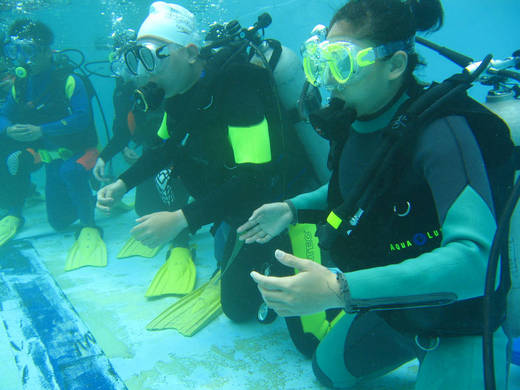 學術科海洋實習潛水教授技術進行練習與證照考試。