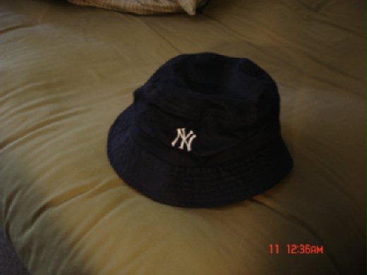 這頂帽子~~是紐約洋基球團送的啦。不要羨慕了~~"人客",好歹我也是從家裡搭了兩個小時的車直奔YANKEE STADIUM 換來的ㄚ。感謝文偉 靜螢~為了看王建民不辭辛苦去現場買票~~這頂帽子就是我們當天的意外收穫囉。 重點是王建民贏了~~耶