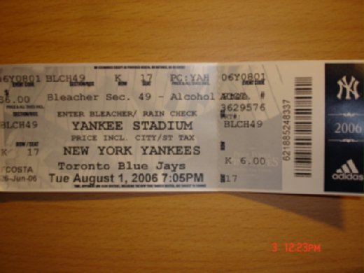 當天滿懷著希望要去洋基球場朝聖一番,除了王建民的關係外也想看看五萬人的球場是怎麼樣的一個回事。加上之前跟老師問過票價跟我們要坐的位置之候就讓我當場付出二十五塊的大洋。本壘後方中央的位置又有學校的""大黃巴士""來回接送 這樣的便宜不佔一下~~對不起自己ㄚ。客官們~~你們說是不是ㄚ~~都被學校賺了這樣多的money了~~有機會總是要討一點回來的ㄚ~~更何況要去看棒球。