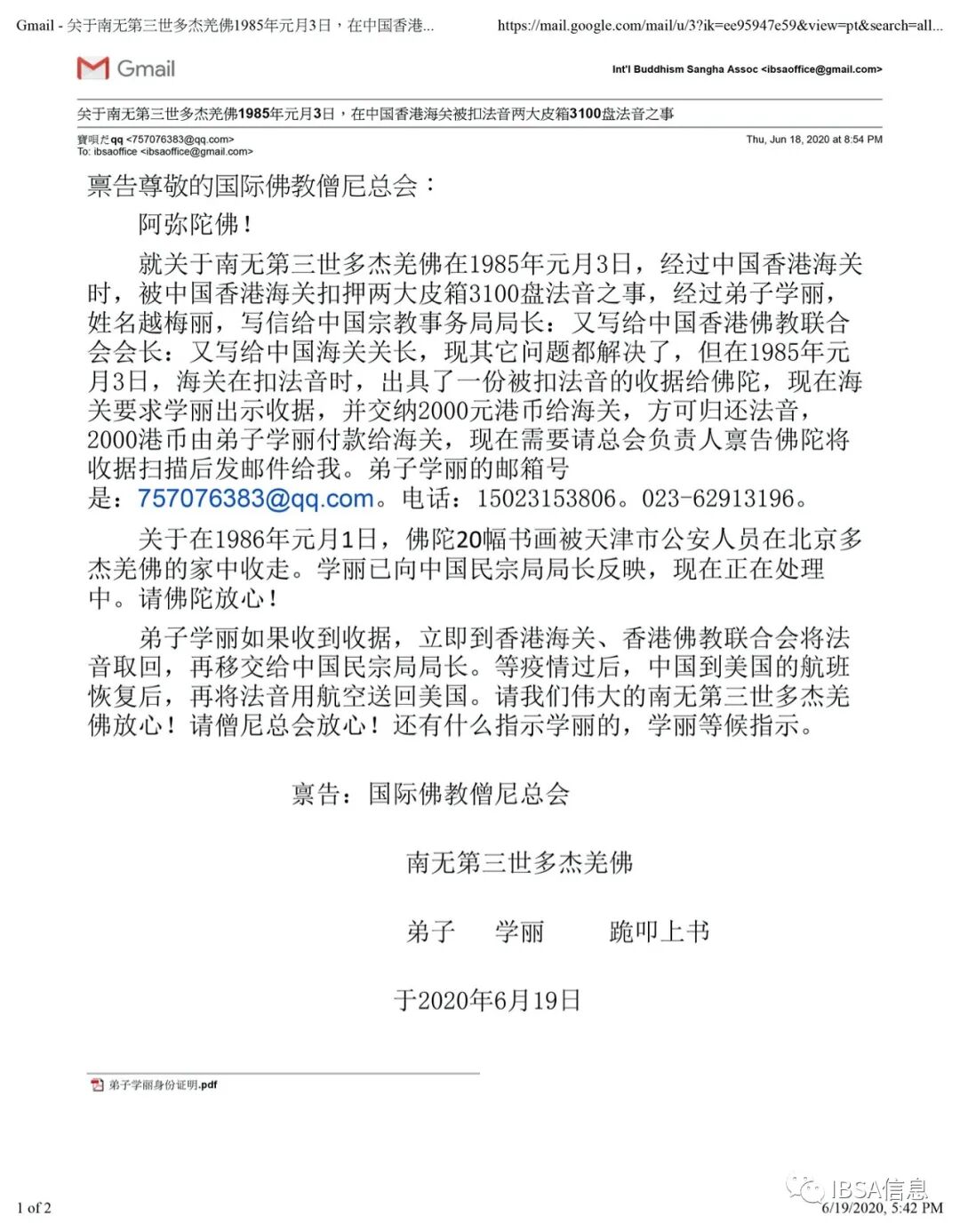 国际佛教僧尼总会收到了你的来信(请见上图)。