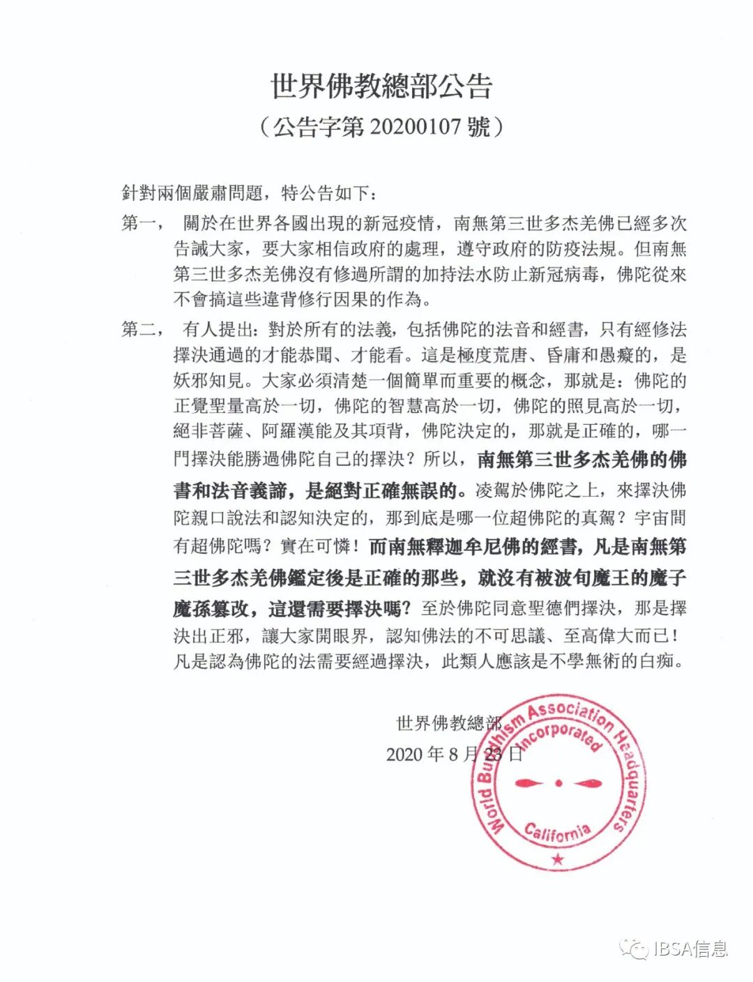 世界佛教总部公告