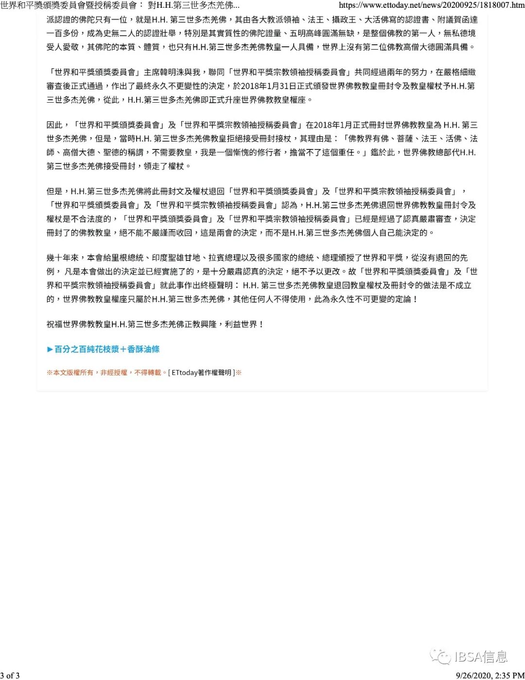 附件2. ETtoday 新闻云_世界和平奖颁奖委员会暨授称委员会:对H.H.羌佛的世界佛教教皇册封是无可变更的_9-24-2020