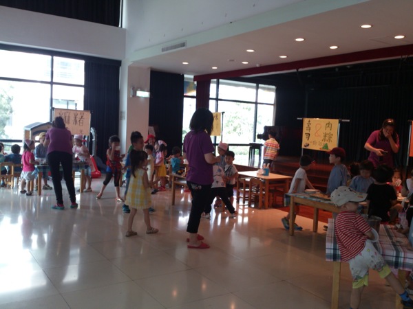 這種熱鬧滾滾的場景可不是花園夜市,而是小朋友們真實的扮演小吃攤老板與顧客,各個攤位賣的可都是真正美味的米食好料理。