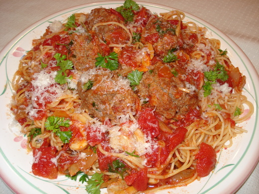 做Spaghetti時,我會先做肉丸,再跟茄汁一起煮;肉丸要做得鬆軟又不失去肉的口感,可以拌些麵包屑或土司。