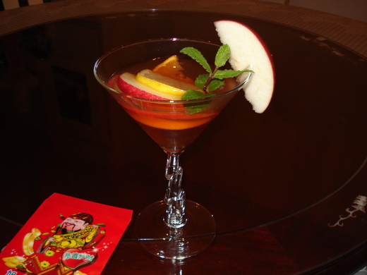好處是酒精濃度很有彈性,不需要嚴格規定,可以隨人喜好。又因為放了多種水果,喝起來清爽可口,再加上那紅艷美麗的顏色,就這麼帶出了我們需要的,羅曼蒂克…..