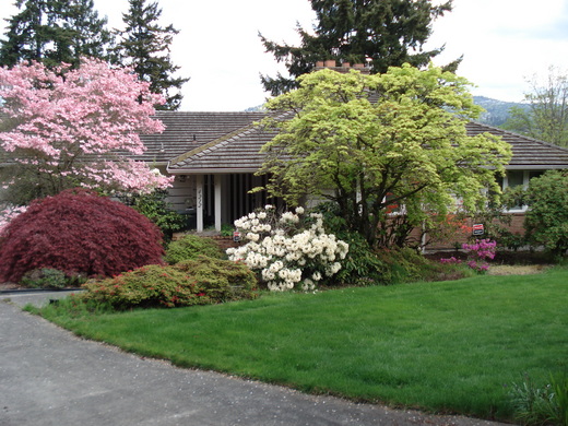 (春天一到, 門前那棵粉色Dog wood 花開最美)