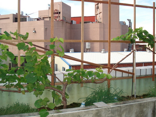 擁有果實纍纍的葡萄棚架,一直是我從小的願望,這幾年因為居台灣的日子變多,所以才突發奇想,要在住家屋頂,圓這個夢,只是前後做做停停,因為沒請專家策劃(只靠半路出家的自己),所以過程非常辛苦,碰到許多問題,譬如漏水,防風,防熱和過剩泥土的處理….等等困難,最後好在一位經驗豐富,宅心仁厚的好工人,全力幫忙克服一切,才圓滿達成這樁美麗的任務……這棚架,融合了太多的美麗,不是嗎?