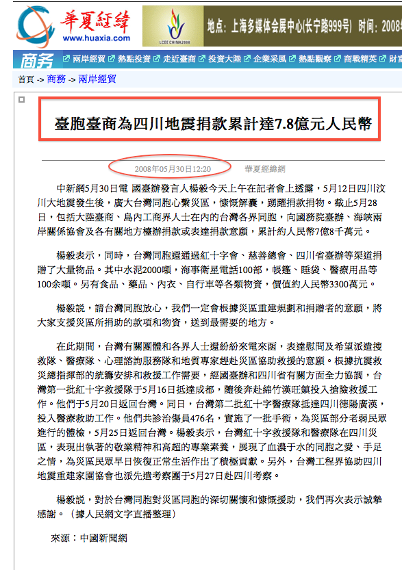 台北市議員簡余晏16日批評台北市政府說謊!市府發言人張其強說: 「市府不可能挪用921善款捐助川震」,但市府在2009年11月16日議會備詢時,前社會局長師豫玲在議場坦承台北市921賑災剩餘款8181萬3414元挪撥到市府「重大災害民間賑災捐款」,且在2008年6月再挪用6400萬元轉給「中華民國紅十字會」,接著捐給四川一所小學一棟大樓。簡余晏出示當時的「重大災害害民間賑災捐款」委員會議表示,2008年從六月決定到十月撥款時,台灣正逢卡玫基、薔蜜、辛樂克風災傷亡嚴重,委員會認為把九二一捐款從台灣搬去中國非常不適宜,但北市府在委員會成員反對下,卻仍堅持捐款給中國四川「解北小學」蓋20間教室。