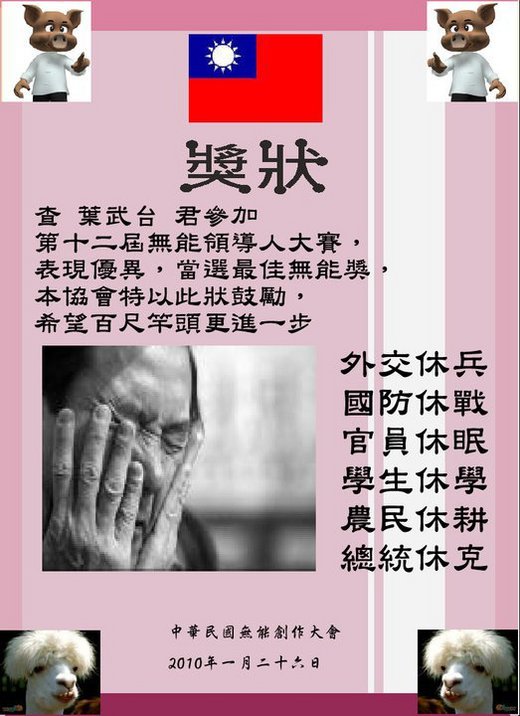 下一則: 想落跑的人沒資格參選立委或總統 黃招榮 2011/03/25