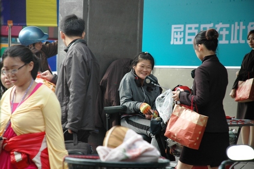 以前在路上,在販賣地點被搶好幾次,她叫也叫不出來,眼睜睜目送搶她辛苦錢的人揚長而去。好心的人就安排她到合庫門口賣,合庫有駐衛警察;假日到國光路大買家賣場門口,進出人多比較安全。