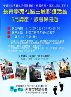 長青學苑社區聯誼六月講座:6/19(四)旅遊保健通