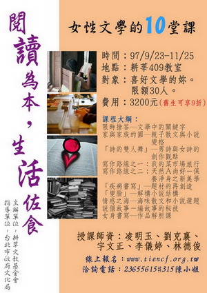 對象:對文學感興趣的民眾、退休人士、限額30人