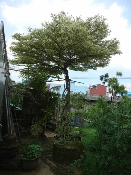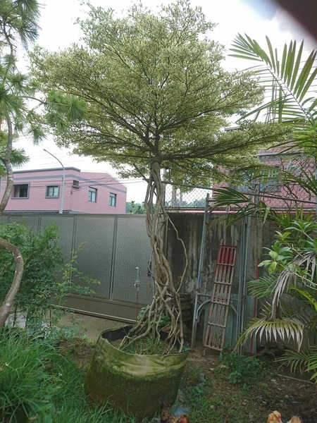 以前開門常聽到緊急煞車,主因就是這2棵,不要說見過看過,全台或者全世界也僅有這2棵,7年前還曾上報紙,植物根浮現上來會會產生生長緩慢現象,而這又是超過2公尺的浮根,你說要步要花長遠的時間,然而珍貴的是我把它改良成斑葉,斑葉如花更是驚艷,但是生長更是緩慢。