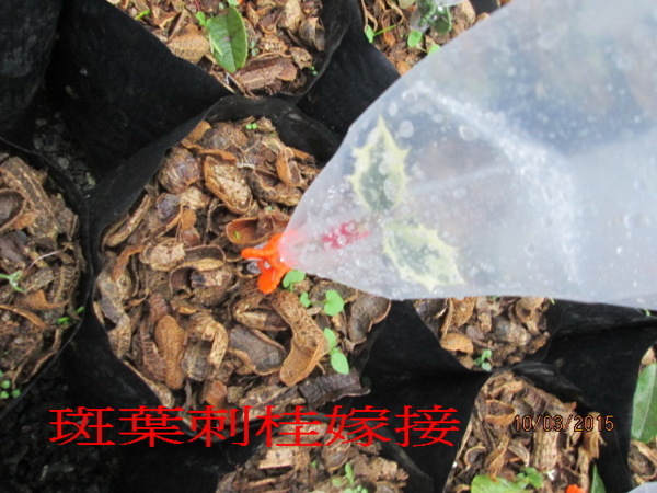 一棵哪夠玩,嫁接一堆來玩,布過聽說布太好嫁接,的確未了維持斑葉,只好帶葉嫁接,屬於難度較高,但季節對舊不怕啦ㄏㄏㄏ