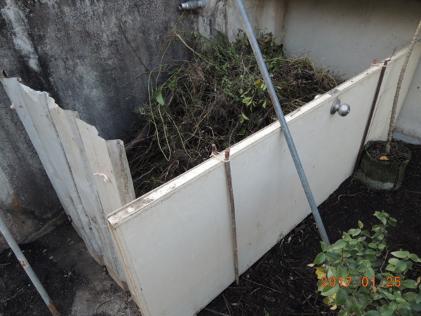 這是較大型的枯枝落葉集中區,ㄏㄏㄏ利用一些廢棄門板與烤漆板隨意拼湊,裡面也偷種一棵喬木ㄏㄏㄏ,不管是使用購買資材還是東撿西湊拼裝都是一種,只要動手做那就會成型的搞怪ㄏㄏㄏ。