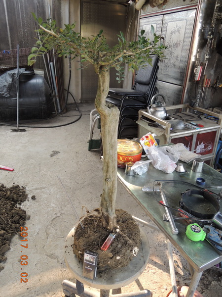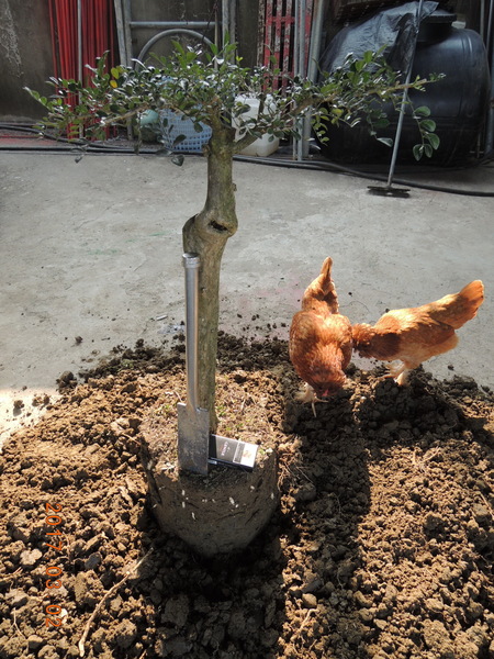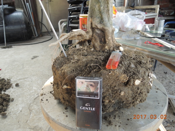 看好喔,沒有全數將土壤拆解喔,因為基本數據不足(細根系統),要縮小原有尺寸超過一半以上(只剩1/4),最好留有一個基本的土柱為最佳方式,縮小放置盆內後覆蓋的壤土需蓬鬆壤土,方便細根發展,並未以後大拆解殿下基礎根系,蓬鬆壤土就是為了往後大拆解時避免傷到優良細根系,至於原有黏質壤土,經過1~2年培育後,大都是較為粗曠根系,所以較無大礙,在來就只剩下型態的枝葉管理與培育,ㄏㄏㄏ等時間到了那就會是上下齊全之素材,那就是一顆盆景了,ㄏㄏㄏ這一科的損傷面都是自然造成的,非人工加料的,只有嫁接人工化與栽培,