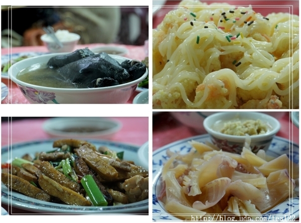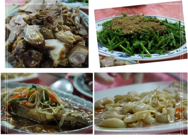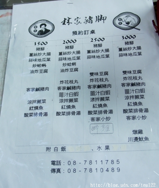 以林家豬腳三千元的團菜,計有豬腳、蒜味地瓜葉、雙味豆腐(炸豆腐、花生豆腐)、炸手工現作花枝丸、客家鹹豬肉、薑汁白蝦、涼拌過貓、紅燒魚、酸菜排骨湯、客家小炒、燉雞、川燙魷魚,餐後水果、白飯,不但菜色豐富,手藝超群,C/P值極高,所使用的菜色均是在地特產,蕨類、海產新鮮甘甜,能入圍臺灣團餐實不為過。