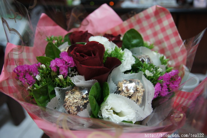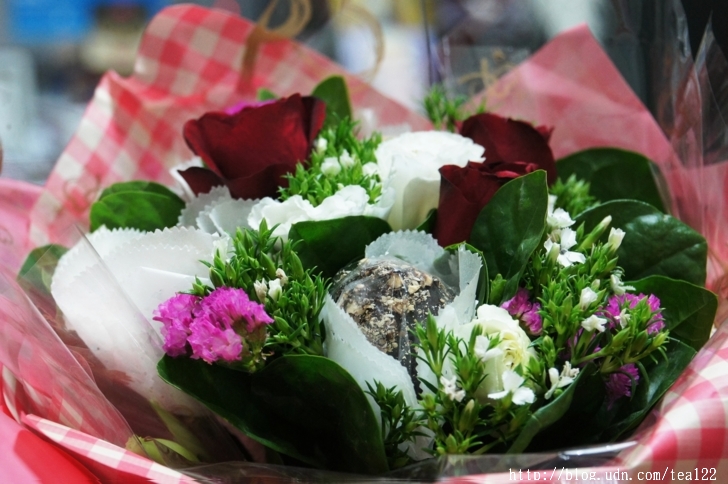電影上都是這麼演的,一束鮮香,一盒巧克力,就能讓女主角從此無怨無悔的愛上男主角,原來,自恃理性超過感性的我,也有昏頭的一瞬間。情人節將屆,這一束能吃又能看的花束,想來會為很多愛戀中的男女,拉來美好的姻緣。祝福大家,新的一年美夢成真喔!