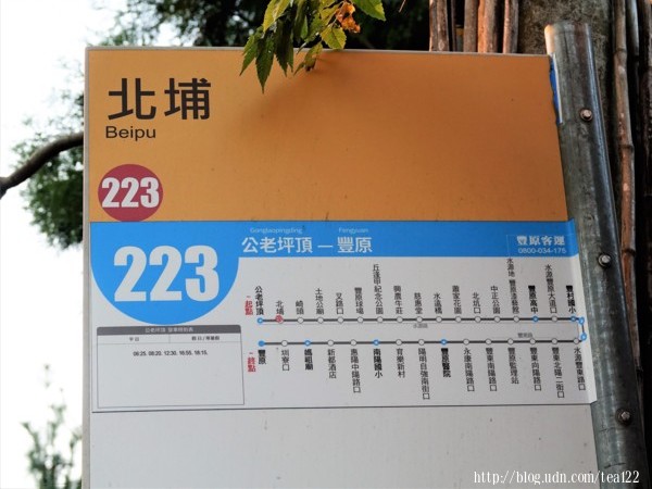 豐原223市內公車往公老坪頂,配合學生上下課、市民晨間、傍晚運動發車,一日往返五個班次。許多人都會帶小孩到中正公園玩耍,順道在市集買些農民自家栽種的蔬果;不少健行的人則會搭到公老坪,於公老龍泉、旱溪頭步道上鍛鍊身體。