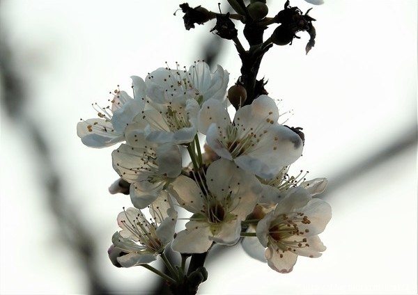 全台追梅花的日子,公老坪也是雪白一片,拍著「雪山風光」,拍著果園「咸豐草」花,拍著密密實實的「李花」,耳畔聽到有人歡呼「梅花!」?四處好奇觀望一圈,嗯!我喜歡拍梅花孤傲堅毅的枝幹,總以蒼老的粗幹為襯托,配上單朵花;李花素來一簇一簇,拍起來豐富熱鬧,色澤也白得厚實,想來,是有些誤會。